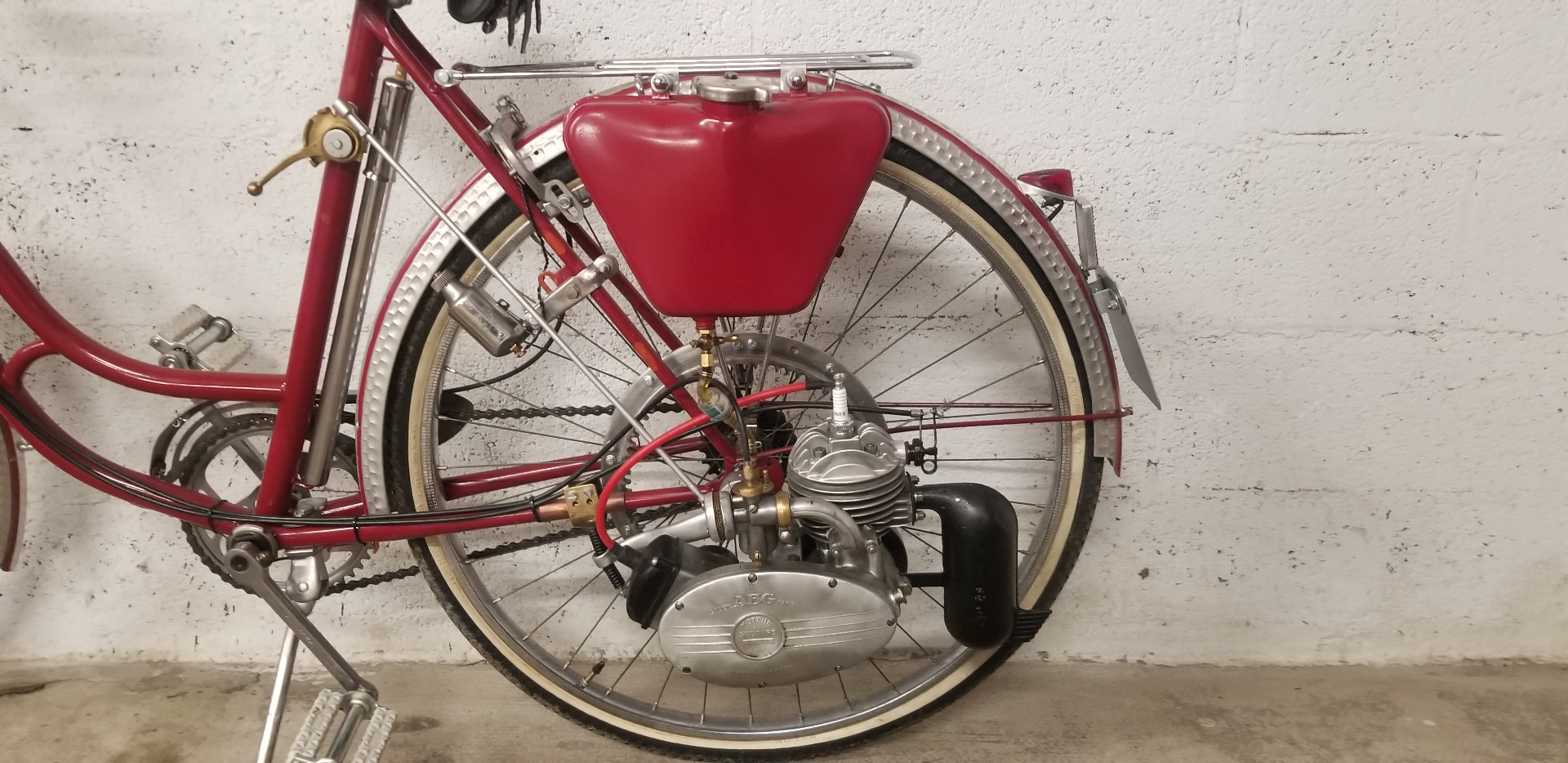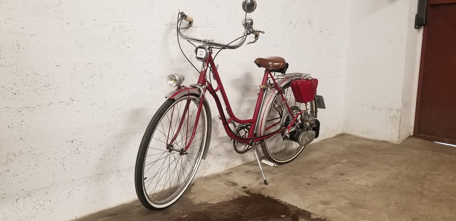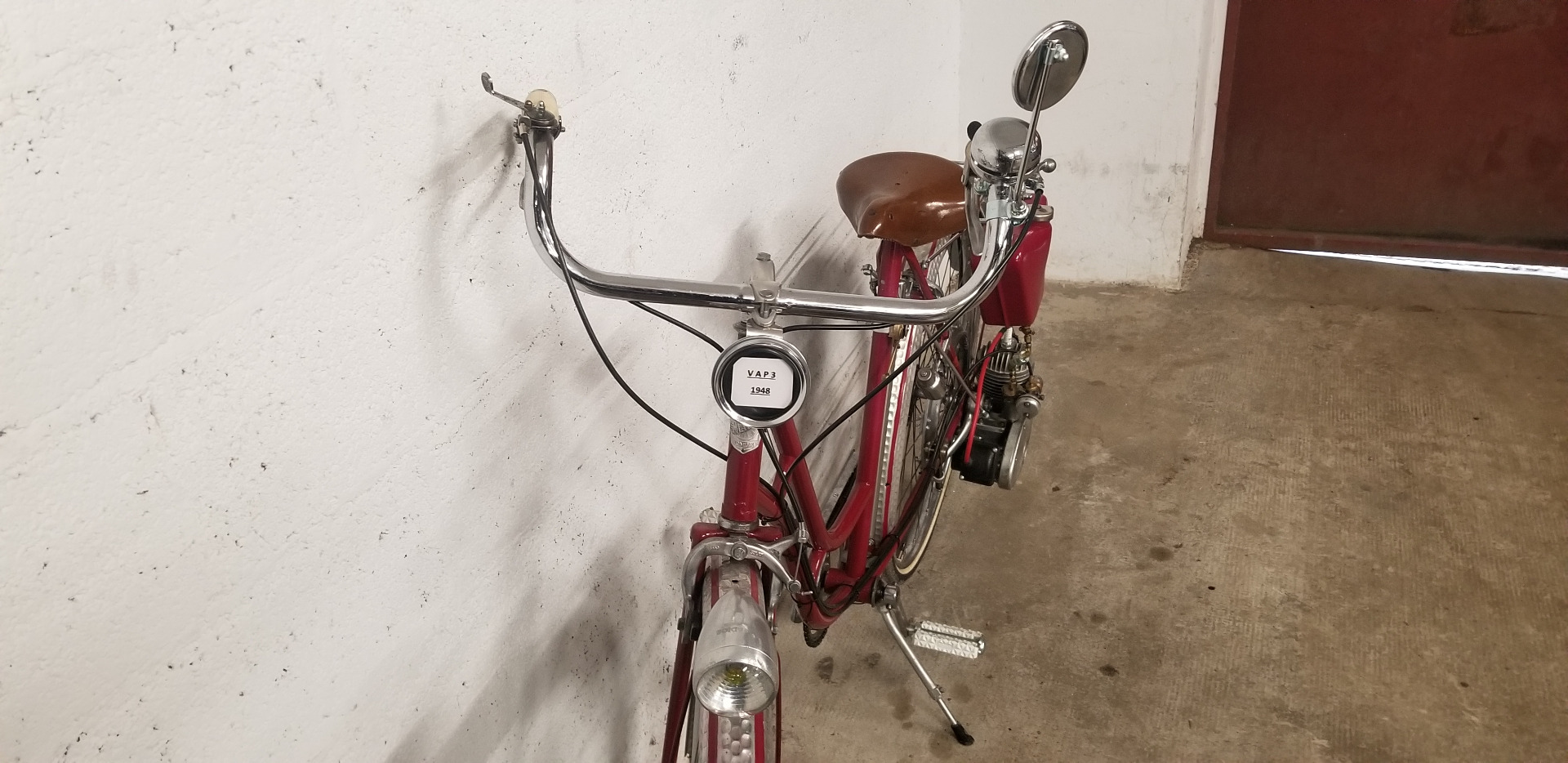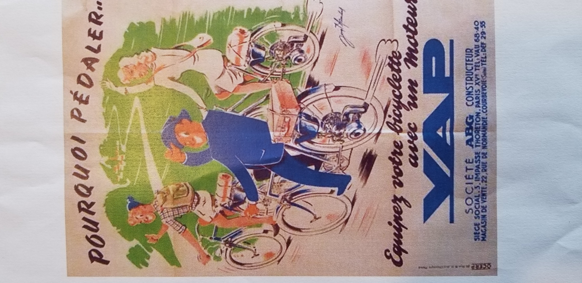 Très beau vélo ancien équipé d'un kit VAP 3 comprenant le moteur avec carburateur et échappement + roue de liaison avec la roue du vélo + réservoir d'essence, ensemble permettant de motoriser un vélo tout à fait standard. En effet après guerre les automobiles sont rares et chères, les motos et vélomoteurs, plus abordables mais le vélo beaucoup plus courant. C'est un plaisir de vous présenter ce bel exemplaire et de conserver ce patrimoine en bon état de fonctionnement, n'hésitez pas à passer !