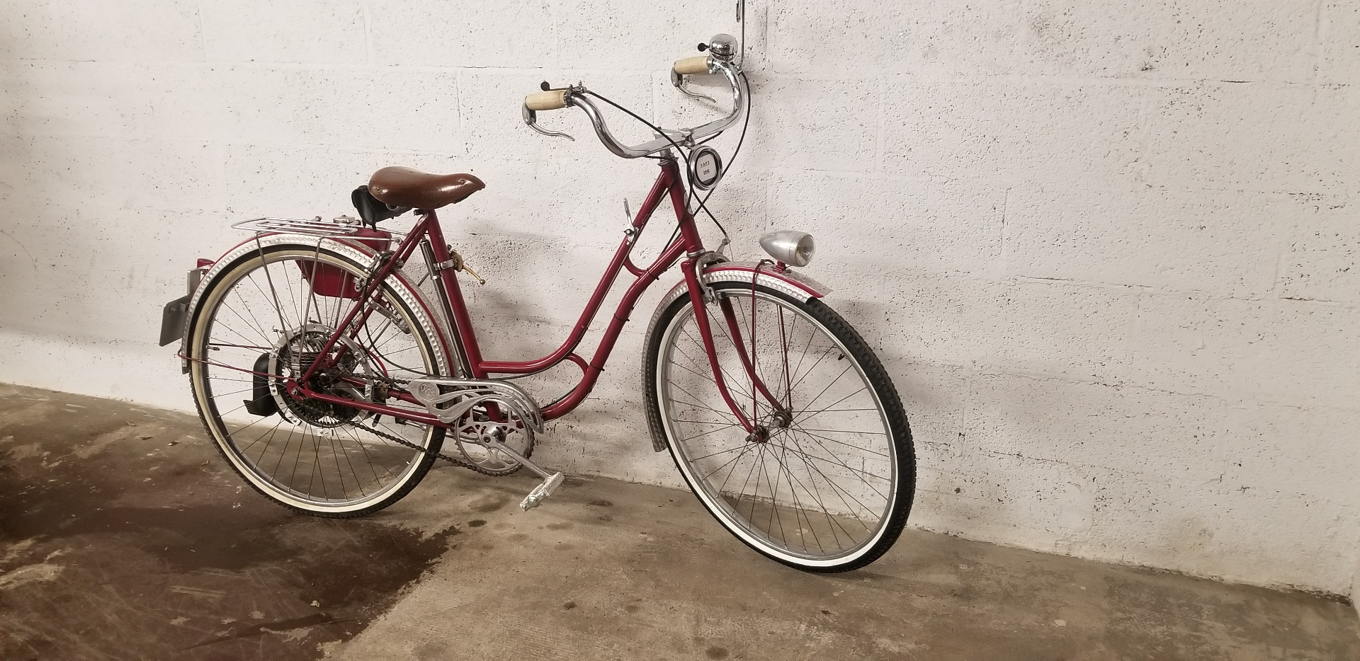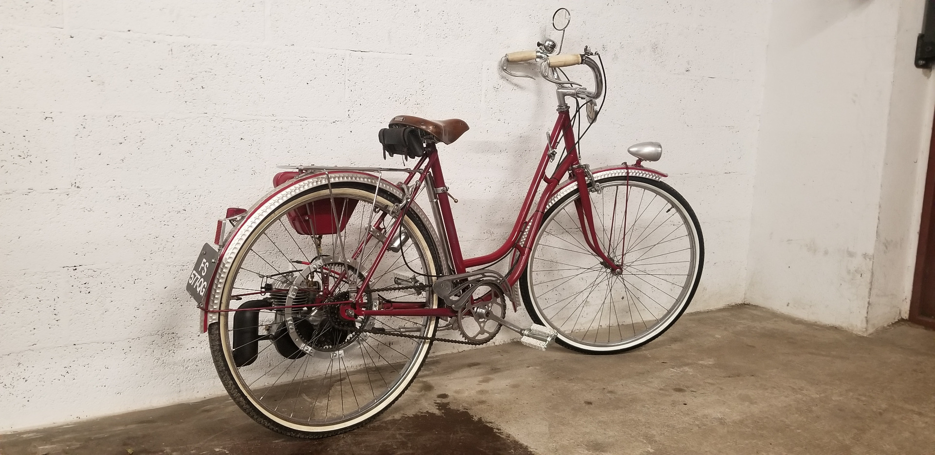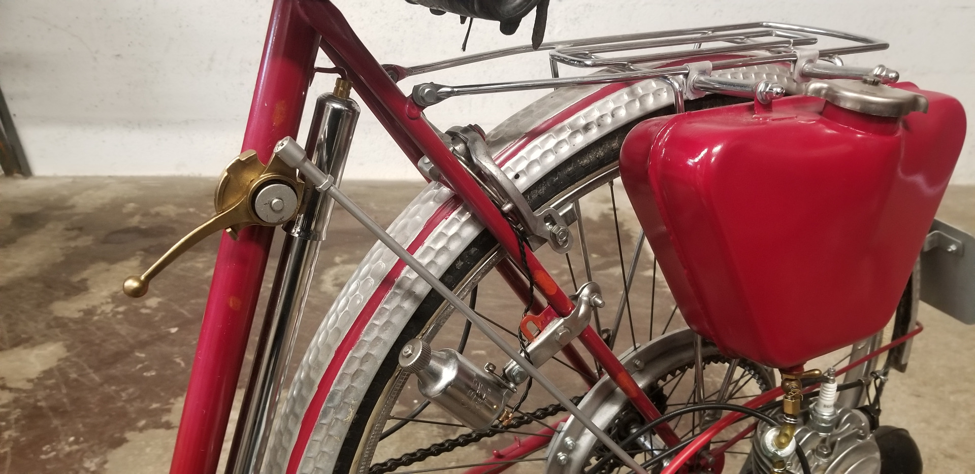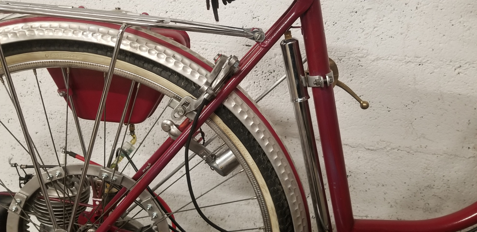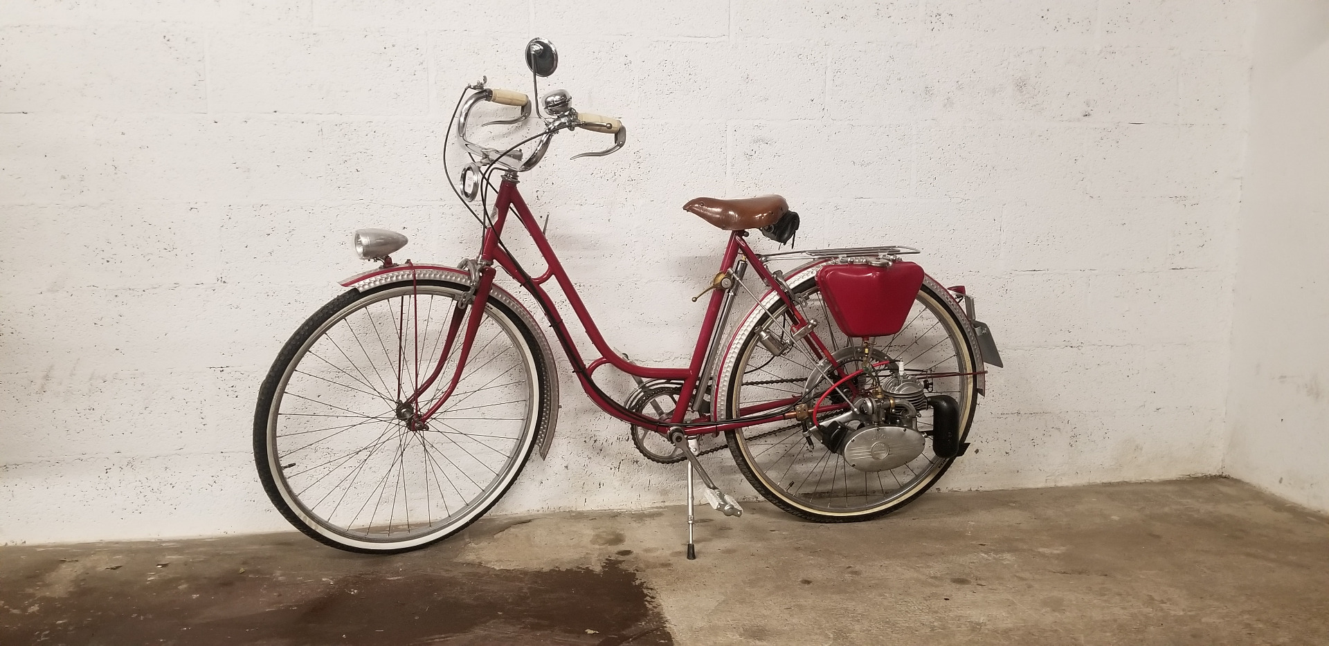 Très beau vélo ancien équipé d'un kit VAP 3 comprenant le moteur avec carburateur et échappement + roue de liaison avec la roue du vélo + réservoir d'essence, ensemble permettant de motoriser un vélo tout à fait standard. En effet après guerre les automobiles sont rares et chères, les motos et vélomoteurs, plus abordables mais le vélo beaucoup plus courant. C'est un plaisir de vous présenter ce bel exemplaire et de conserver ce patrimoine en bon état de fonctionnement, n'hésitez pas à passer !
